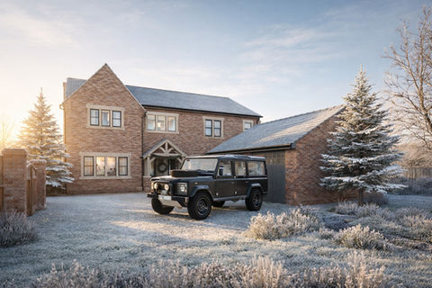 New-build five-bedroom home in the South Ribble green belt at Longton. The design presents traditional detailing to the front, responding to its rural context and local character. The rear elevation shifts to a more expressive contemporary approach, using a bold form and modern materials to create a clear architectural identity and a strong sense of place suited to modern family living.